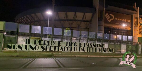 Attraverso la propria pagina Facebook, la "Curva Nord 12" ha mostrato lo striscione esposto al Barbera in vista del derby....