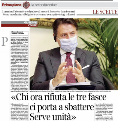 Repubblica: “Italia. Terapie intensive quasi al limite, altre sei Regioni rischiano la stretta”