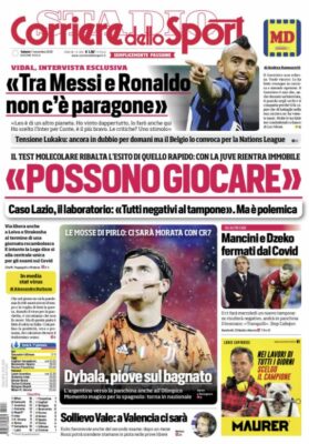 Nella sua prima pagina l'edizione odierna del "Corriere dello Sport" si sofferma sul caos tamponi in casa Lazio. Per il...