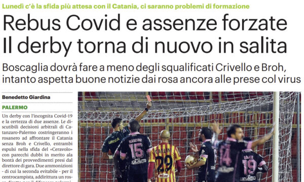 L'edizione odierna del "Giornale di Sicilia" si sofferma sul derby fra Palermo e Catania, in programma lunedì 9 novembre. Una...