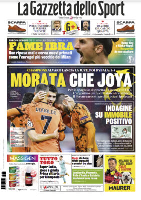 Prima pagina Gazzetta dello Sport: “Fame Ibra. Indagine su Immobile positivo. Morata, che Joya”