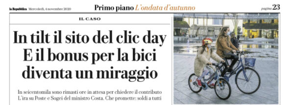 L'edizione odierna di "Repubblica" parla del bonus mobilità. Alla fine dell’ennesima “caporetto digitale” di questo paese, il ministro dell’Ambiente Sergio...