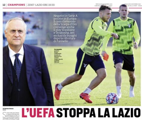 Corriere dello Sport: “L’Uefa stoppa la Lazio”