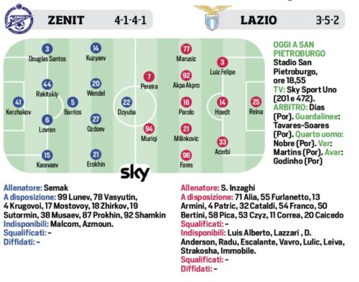 Giornata di Champions League per le italiane. Si sfideranno Zenit e Lazio nel terzo turno della fase a gironi. In...