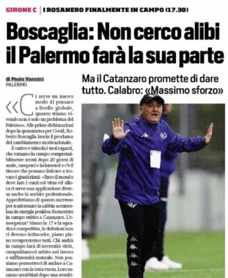 Il Palermo torna in campo quest'oggi contro il Catanzaro e l'edizione odierna del "Corriere dello Sport" riporta le parole del...