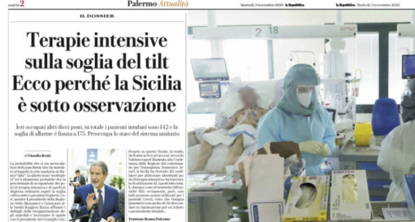 Repubblica: “Terapie intensive sulla soglia del tilt. Ecco perché la Sicilia è sotto osservazione. Preoccupa lo stato del sistema sanitario”