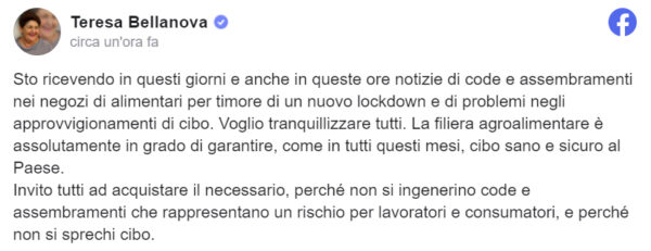 Il ministro per le Politiche agricole Teresa Bellanova ha parlato di coronavirus e di un eventuale nuovo lockdown in Italia...