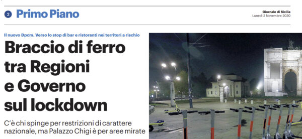 L'edizione odierna del "Giornale di Sicilia" si sofferma sull'ulteriore stretta in arrivo. Sul lockdown da registrare un braccio di ferro...