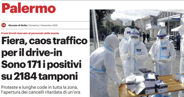 L'edizione odierna del "Giornale di Sicilia" si sofferma sul "drive-in" dello screening di massa alla Fiera del Mediterraneo. Ingorghi e...