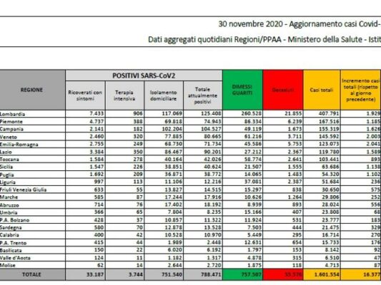 Anche oggi, arriva il consueto bollettino in merito alla situazione Covid in Italia. Dall’inizio dell’epidemia di coronavirus, almeno 1.601.554 persone (compresi guariti...
