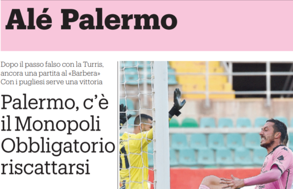 L'edizione odierna del "Giornale di Sicilia" si sofferma sulla sfida fra Palermo e Monopoli. I rosa hanno l'obbligo di riscattarsi...
