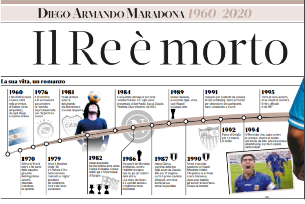 L'edizione odierna de "La Gazzetta dello Sport" dedica ampio spazio alla scomparsa di Diego Armando Maradona. Abbiamo perso una parte...