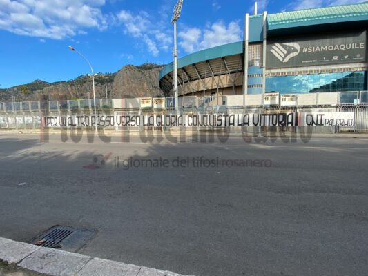 La Curva Nord Inferiore ha affisso uno striscione fuori i cancelli del "Renzo Barbera" per incitare la squadra in vista...