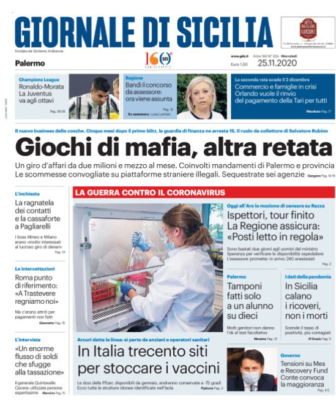 Prima Pagina Giornale di Sicilia: “Giochi di mafia, altra retata. Coronavirus. In Italia 300 siti per stoccare i vaccini”