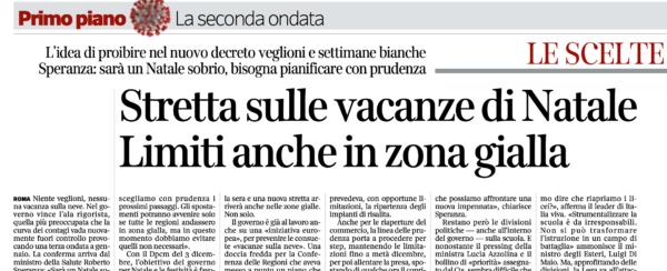 L'edizione odierna del "Corriere della Sera" parla del Natale in tempo di Covid. Niente veglioni, nessuna vacanza sulla neve. Nel...