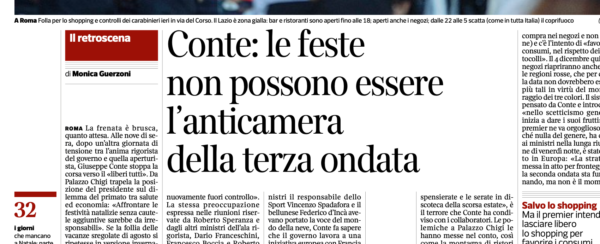 L'edizione odierna del "Corriere della Sera" parla delle feste di Natale in tempi covid. La frenata è brusca, scrive il...