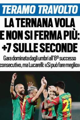L'edizione odierna di "Tuttosport" elogia la cavalcata della Ternana. La squadra rossoverde - scrive il quotidiano - sconfigge, dopo il...
