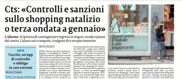 La Sicilia: “Cts: «Controlli e sanzioni sullo shopping natalizio o terza ondata a Gennaio»”
