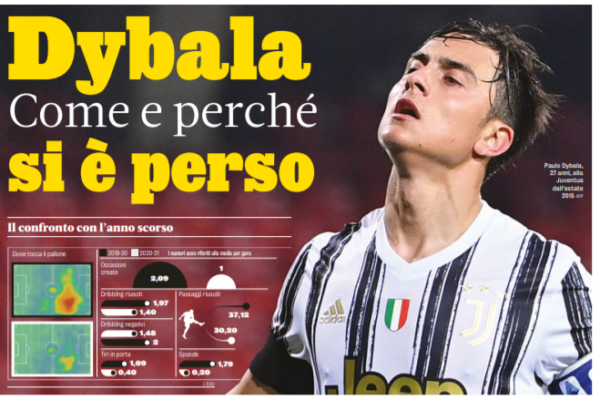 L'edizione odierna della "Gazzetta dello Sport" si sofferma sul momento di Paulo Dybala, attaccante della Juventus. Il rendimento sotto standard...
