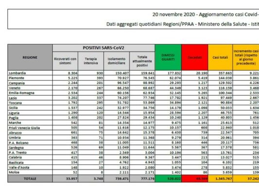 In Italia, dall’inizio dell’epidemia di coronavirus, almeno 1.345.767 persone (+37.242 rispetto a ieri, +2,8%; ieri +36.176) hanno contratto il virus Sars-CoV-2. Di queste, 48.569 sono decedute (+699,...