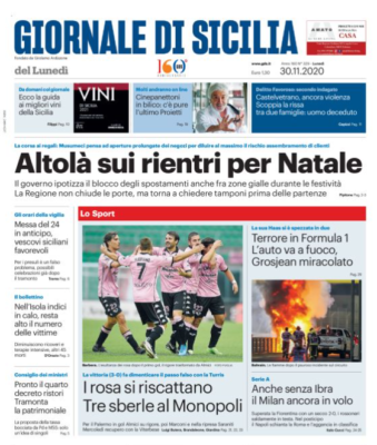 Nella sua prima pagina l'edizione odierna del "Giornale di Sicilia" si sofferma sulle misure restrittive in vista del Natale. Molto...