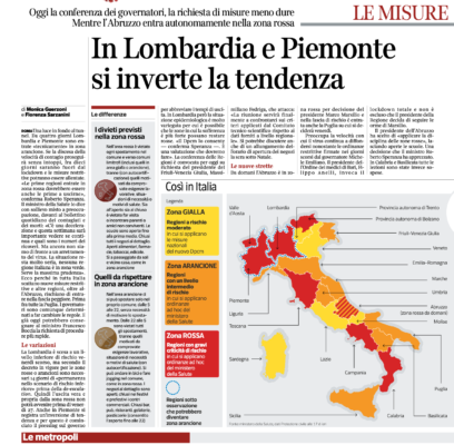 La prima pagina dell'edizione odierna del "Corriere della Sera", parla di un pressing per un abbassamento delle restrizioni in Italia....