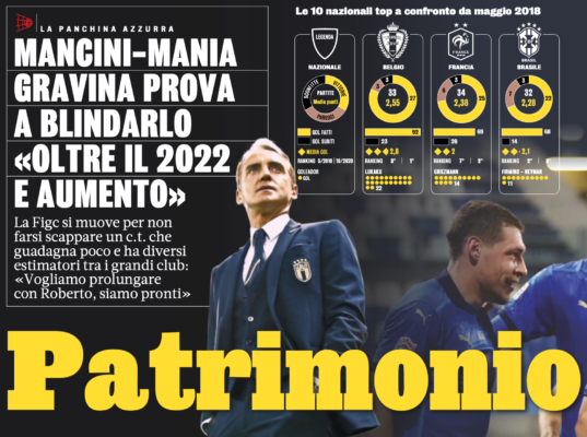 L'edizione odierna della "Gazzetta dello Sport" parla del ct della Nazionale Roberto Mancini. La Figc non vuole farsi scappare l'autore...