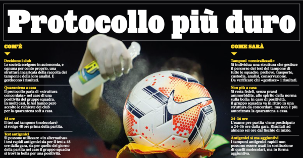 Gazzetta dello Sport: “Coronavirus. Protocollo più duro”