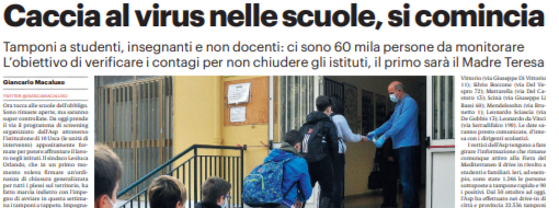 L'edizione odierna del "Giornale di Sicilia" si sofferma sulla caccia al Coronavirus nelle scuole di Palermo. Da oggi prende il...