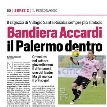 L'edizione odierna del "Corriere dello Sport" si sofferma sulla "bandiera" Andrea Accardi. Tutta una vita in rosa, ad eccezione delle...