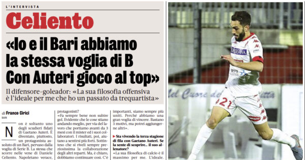 L'edizione odierna della "Gazzetta dello Sport" riporta le dichiarazioni di Daniele Celiento, difensore del Bari: «Ecco perché ho scelto il...