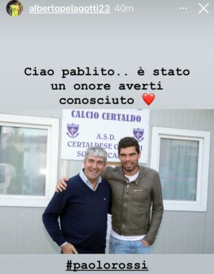 Attraverso le proprie storie Instagram Alberto Pelagotti ha voluto ricordare Paolo Rossi, scomparso questa mattina. In alto la foto e...