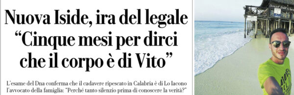 L'edizione odierna de "La Repubblica" si sofferma sul caso Nuova Iside. Il corpo rivenuto in data 11 giugno 2020, sul...