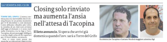 Il closing tra Joe Tacopina, imprenditore italo americano, e il Catania è slittato ancora una volta. Secondo quanto riporta "La...