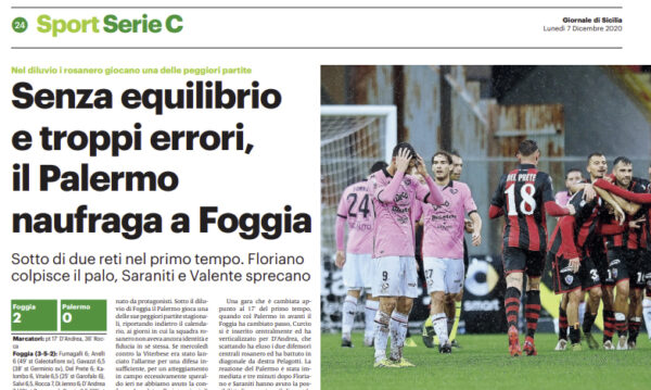 L'edizione odierna del "Giornale di Sicilia" si sofferma sulla sconfitta del Palermo. Piove sui rosa, sulle loro ambizioni e sulle...