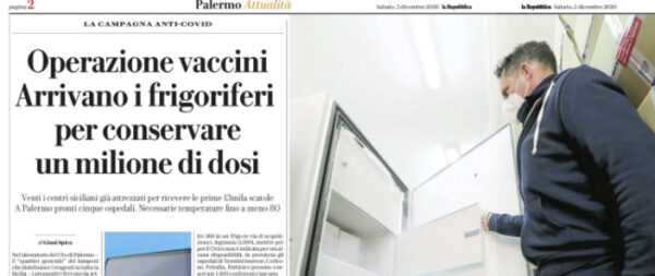 L'edizione odierna de "La Repubblica" si sofferma sui vaccini anti-Covid 19. Nel laboratorio del Cto di Palermo i preparativi fervono...