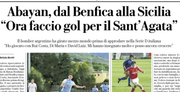 L'edizione odierna de "La Repubblica" si sofferma su Guido Ezequiel Abayiàn, bomber del Sant'Agata. «Mio papà è stato un calciatore...