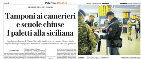 L'edizione odierna de "La Repubblica" si sofferma sulle misure anti-Covid 19 in Sicilia. Uno screening di massa per i lavoratori,...
