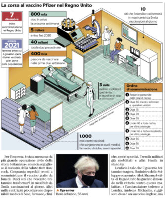 L'edizione odierna de "La Repubblica" si sofferma sulla corsa al vaccino anti-Covid 19. Il Regno Unita da ieri è il...