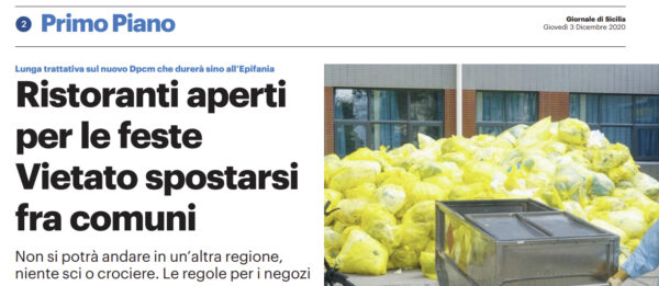 L'edizione odierna del "Giornale di Sicilia" si sofferma sulle misure anti-Covid 19 in vista del periodo natalizio. Si lavora al...