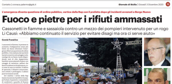 L'edizione odierna del "Giornale di Sicilia" si sofferma sul problema rifiuti a Palermo. Cassonetti in fiamme e delirio di sporcizia....