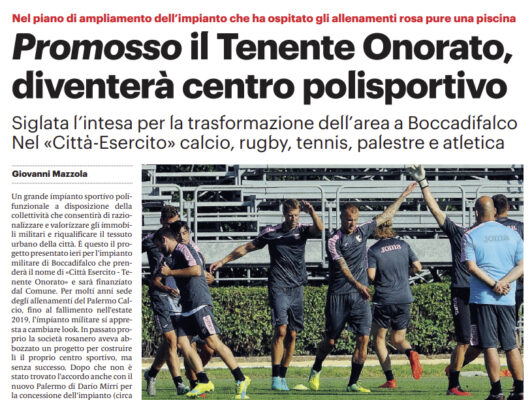 L'edizione odierna del "Giornale di Sicilia" si sofferma sulla trasformazione del "Tenente Onorato" di Boccadifalco. Diventerà un grande impianto sportivo...
