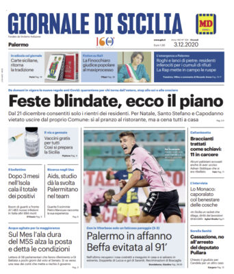 Nella sua prima pagina l'edizione odierna del "Giornale di Sicilia" si sofferma sulle misure anti-Covid 19 in vista del periodo...