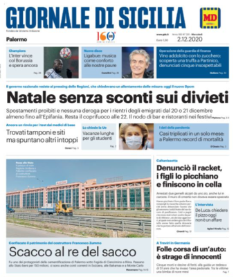 Nella sua prima pagina l'edizione odierna del "Giornale di Sicilia" si sofferma sull'emergenza Coronavirus. Si va verso un Natale senza...