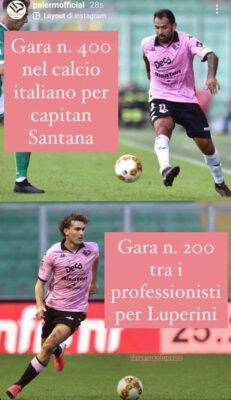 Il Palermo si congratula con capitan Santana e con Luperini. Il capitano infatti raggiunge quota 4oo gare tra i professionisti...