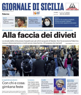 Nella sua prima pagina l'edizione odierna del "Giornale di Sicilia" si sofferma sulle misure anti-Covid 19. Le strade delle città...