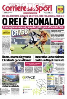 Nella sua prima pagina l'edizione odierna del "Corriere dello Sport" celebra Cristiano Ronaldo. Il fuoriclasse portoghese ha realizzato due reti...