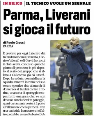 L'edizione odierna del "Corriere dello Sport" si sofferma sul momento del Parma. Se il match contro il Torino non dovesse...