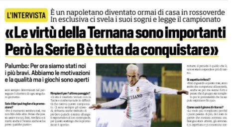 L'edizione odierna del "Corriere dello Sport" riporta le dichiarazioni di Antonio Palumbo, centrocampista della Ternana. «Il segreto? Il gruppo. Siamo...