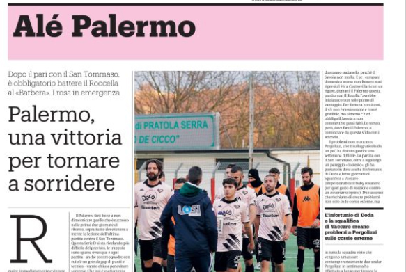 L'edizione odierna del "Giornale di Sicilia" si sofferma sulla sfida tra Palermo e Roccella. I calabresi hanno iniziato il 2020...
